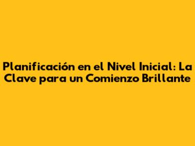 ¿Por Qué es Crucial la Planificación en el Nivel Inicial?