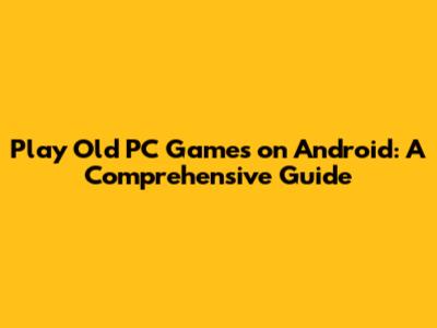 Play Old PC Games On Android: A Comprehensive Guide