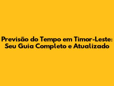 Previsão Do Tempo Em Timor-Leste: Seu Guia Completo E Atualizado