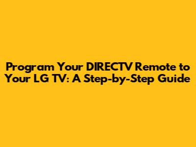 Program DIRECTV Remote To LG TV: Easy Guide