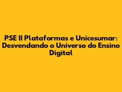 PSE II Plataformas E Unicesumar: Um Guia Completo