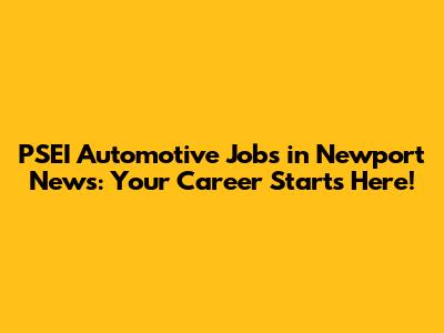 PSEI Automotive Jobs In Newport News: Your Career Starts Here!