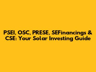 PSEI, OSC, PRESE, SEFinancings & CSE: Solar Investing Guide