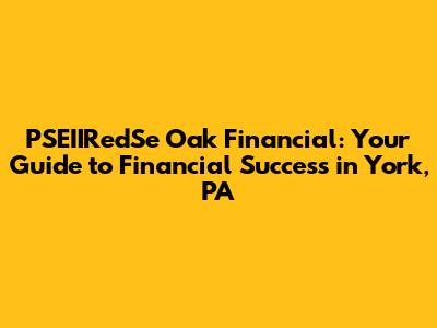 PSEIIRedSe Oak Financial: Your York PA Financial Partner