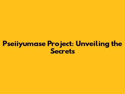Pseiiyumase Project: Unveiling The Secrets
