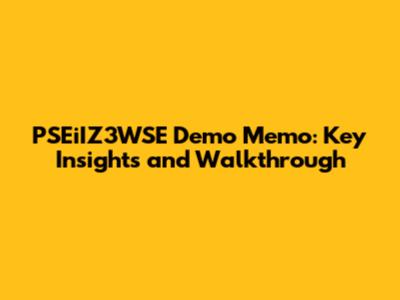 PSEiIZ3WSE Demo Memo: Key Insights And Walkthrough