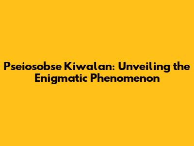 Pseiosobse Kiwalan: Unveiling The Enigmatic Phenomenon