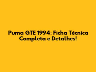 Puma GTE 1994: Ficha Técnica Completa E Detalhes!