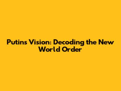 Putin's Vision: Decoding The New World Order