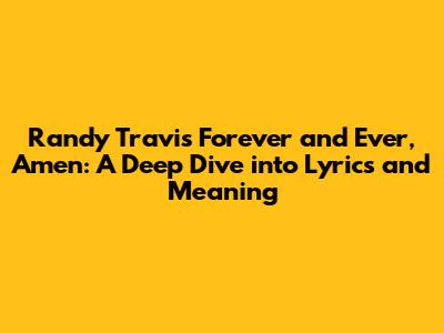Hey guys! Let's dive into one of the most iconic country songs ever written: Randy Travis' "Forever and Ever, Amen." This tune isn't just a catchy melody; it's a heartfelt promise of enduring love, wrapped in simple yet profound lyrics. So, grab your cowboy hats, and let's explore what makes this song so special and why it continues to resonate with listeners of all ages.