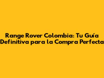 Dónde Comprar un Range Rover en Colombia: Concesionarios y Opciones