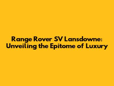 Range Rover SV Lansdowne: Luxury Redefined