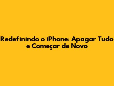 Redefinindo O IPhone: Apagar Tudo E Começar De Novo