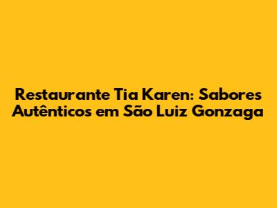Hey guys! If you're ever cruising through São Luiz Gonzaga and your stomach starts rumbling, you absolutely have to put Restaurante Tia Karen on your radar. This place isn't just a spot to grab a bite; it's a whole experience, bursting with authentic flavors that’ll make your taste buds do a happy dance. We're talking about a culinary gem that truly captures the essence of home-cooked goodness, served with a side of warm, friendly vibes. So, grab a seat, get comfy, and let's dive into what makes Restaurante Tia Karen a must-visit destination for food lovers in the region. We’re going to explore the delicious dishes, the welcoming atmosphere, and why this restaurant has become a beloved local hangout. Trust me, by the end of this, you'll be planning your next trip just to get a taste of what Tia Karen has to offer!