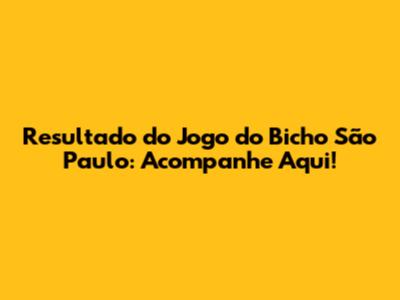 Resultado Do Jogo Do Bicho São Paulo: Acompanhe Aqui!