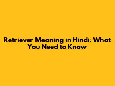 Retriever Meaning In Hindi: What You Need To Know