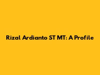 Rizal Ardianto ST MT: A Profile