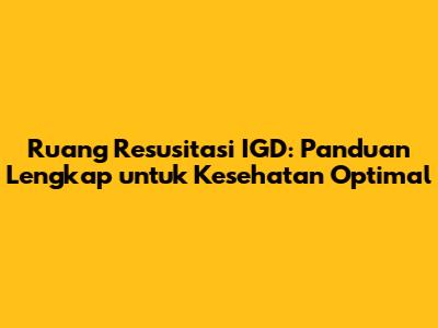Ruang Resusitasi IGD: Panduan Lengkap Untuk Kesehatan Optimal