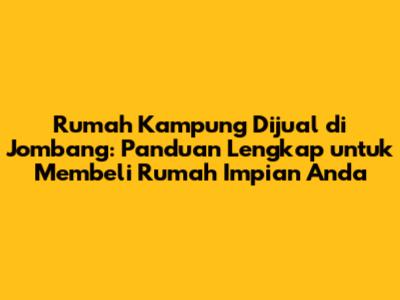 Hai, guys! Kalau kalian lagi cari rumah kampung dijual di Jombang, Jawa Timur, kalian berada di tempat yang tepat. Artikel ini bakal jadi panduan lengkap buat kalian yang pengen punya rumah di lingkungan yang asri dan nyaman. Jombang memang punya daya tarik tersendiri, dengan suasana pedesaan yang masih kental dan harga properti yang relatif terjangkau. Jadi, mari kita bedah satu per satu, mulai dari keuntungan beli rumah kampung, tips mencari, hingga rekomendasi lokasi strategis. Yuk, simak!