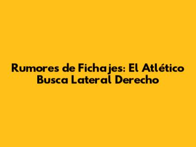 Rumores De Fichajes: El Atlético Busca Lateral Derecho