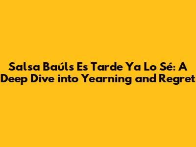 Hey guys! Ever found yourself listening to a song and just feeling it deep in your soul? That's the power of Salsa Baúl, and today we're diving into a track that perfectly encapsulates the themes of longing, regret, and the desperate hope for reconciliation: "Es Tarde Ya Lo Sé" (It's Late, I Know) by an artist in the Salsa Baúl genre. This song isn't just a collection of notes and lyrics; it's a poignant narrative, a plea, a confession set to the infectious rhythm of salsa. We'll break down the song's context, lyrics, musicality, and enduring appeal, exploring why it continues to resonate with listeners. Buckle up, because we're about to take a musical journey!