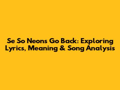Hey music lovers! Ever gotten a song stuck in your head that you just can't shake? For me, that song has been Se So Neon's 'Go Back'. This track isn't just a catchy tune; it's a deep dive into emotions and experiences that many of us can relate to. So, let's unpack the lyrics of 'Go Back', explore their meaning, and do a little song analysis, shall we?