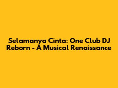 Hey music lovers! Ever felt the beat drop and just lose yourself in the vibe? That's the magic Selamanya Cinta: One Club DJ Reborn is all about. We're talking about a complete musical rebirth, a fusion of classic sounds with a fresh, modern twist that'll have you hooked from the first note. This isn't just a playlist; it's an experience. A journey through the heart of music, curated and spun by the one and only DJ. Get ready to rediscover your love for music, all over again. The essence of this rebirth lies in its ability to take listeners on an emotional rollercoaster, seamlessly blending familiar melodies with innovative beats. This blend creates an atmosphere where nostalgia meets the thrill of the new, fostering a unique connection between the music and the audience. This isn't just about listening; it's about feeling.