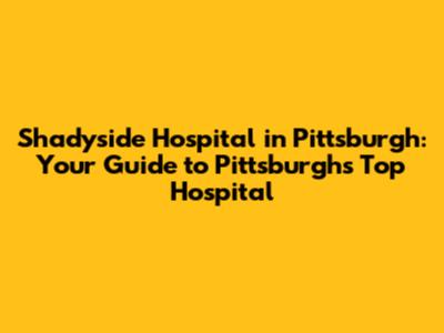 Shadyside Hospital: Your Guide To Pittsburgh's Top Hospital