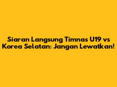 Siaran Langsung Timnas U19 Vs Korea Selatan: Jangan Lewatkan!