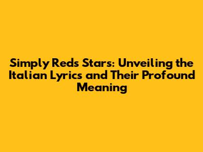 Simply Red's 'Stars': A Deep Dive Into The Italian Lyrics And Meaning