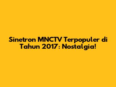 Hey guys, siap untuk bernostalgia? Kita bakal throwback ke tahun 2017 dan ngobrolin sinetron-sinetron hits yang pernah tayang di MNCTV. Siapa nih yang dulu rajin banget mantengin TV demi ngikutin cerita-cerita seru ini? Yuk, kita ulas satu per satu!