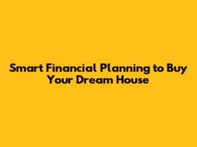 Smart Financial Planning To Buy Your Dream House