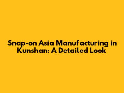 Snap-on Asia Manufacturing In Kunshan: A Detailed Look