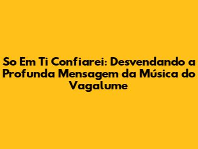 A música "So Em Ti Confiarei" é um verdadeiro hino de fé, que nos convida a confiar em Deus em todos os momentos. Ela nos lembra que Deus é a nossa força, refúgio e esperança, e que podemos encontrar paz e segurança em nossa fé. A letra da música é um convite à oração, à gratidão e à entrega a Deus.