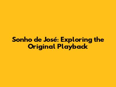 Sonho De José: A Deep Dive Into The Original Playback
