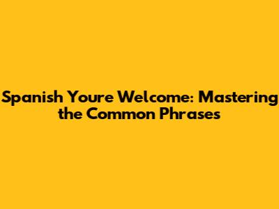 Spanish You're Welcome: Mastering The Common Phrases