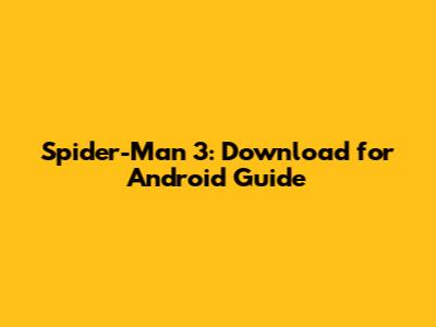 Spider-Man 3: Download For Android Guide