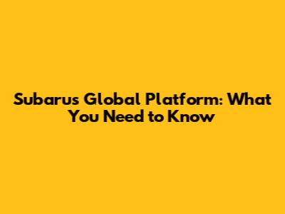 Subaru's Global Platform: What You Need To Know
