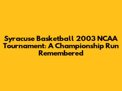 Syracuse's 2003 NCAA Championship Run: A Deep Dive