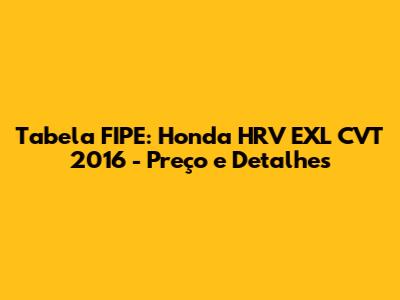 Tabela FIPE: Honda HRV EXL CVT 2016 - Preço E Detalhes