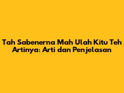 Tah Sabenerna Mah Ulah Kitu Teh Artinya: Arti Dan Penjelasan