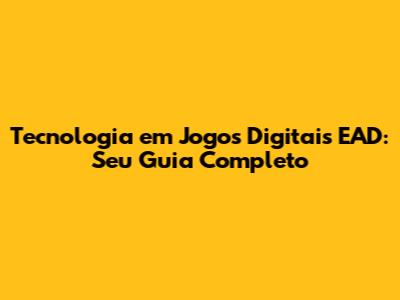 Tecnologia Em Jogos Digitais EAD: Seu Guia Completo