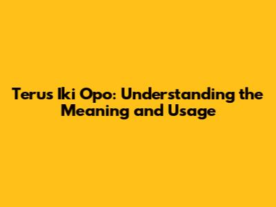 Terus Iki Opo: Understanding The Meaning And Usage