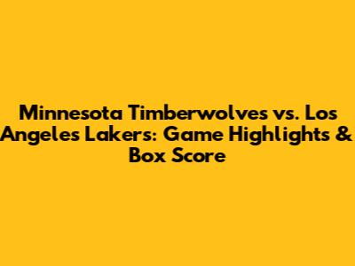 Timberwolves Vs. Lakers: Game Highlights & Box Score