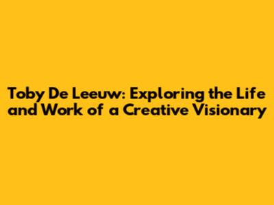 Toby De Leeuw: Innovator And Creative Visionary