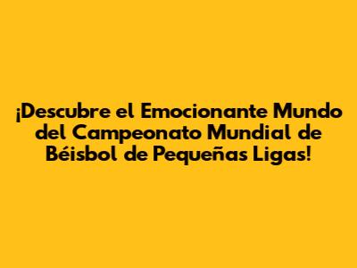 Hey, fanáticos del béisbol! ¿Están listos para sumergirse en el emocionante mundo del Campeonato Mundial de Béisbol de Pequeñas Ligas? Prepárense porque les voy a contar todo lo que necesitan saber sobre este increíble torneo que cautiva a audiencias de todo el mundo. Desde su historia y sus equipos hasta sus jugadores estrella y los juegos más emocionantes, los resultados y los campeones, vamos a explorar cada detalle de este evento deportivo de renombre. Además, les mostraré el impacto y el significado que tiene en la comunidad, cómo pueden ver los partidos, dónde conseguir boletos, y dónde encontrar las últimas noticias y los eventos relacionados con este sensacional torneo. ¡Prepárense para una aventura llena de emociones y sorpresas!