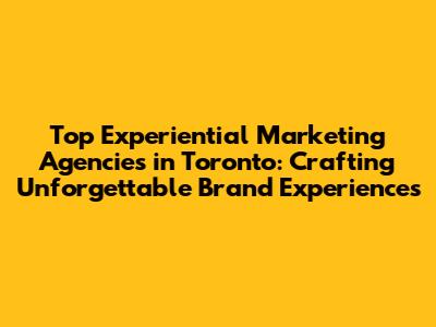 Top Experiential Marketing Agencies in Toronto: Your Gateway to Unforgettable Brand Experiences
