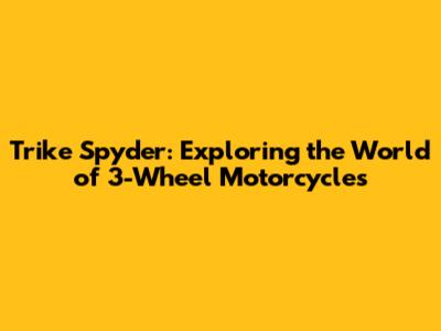 Trike Spyder: Exploring The World Of 3-Wheel Motorcycles