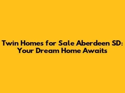 Twin Homes For Sale Aberdeen SD: Your Dream Home Awaits