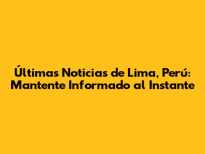 Últimas Noticias De Lima, Perú: Lo Que Debes Saber Hoy